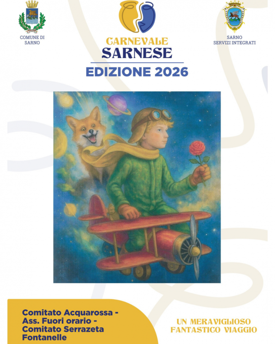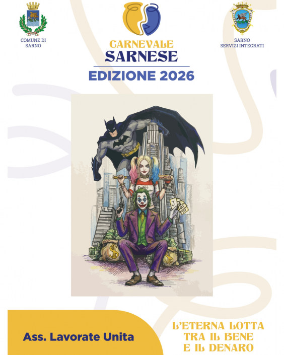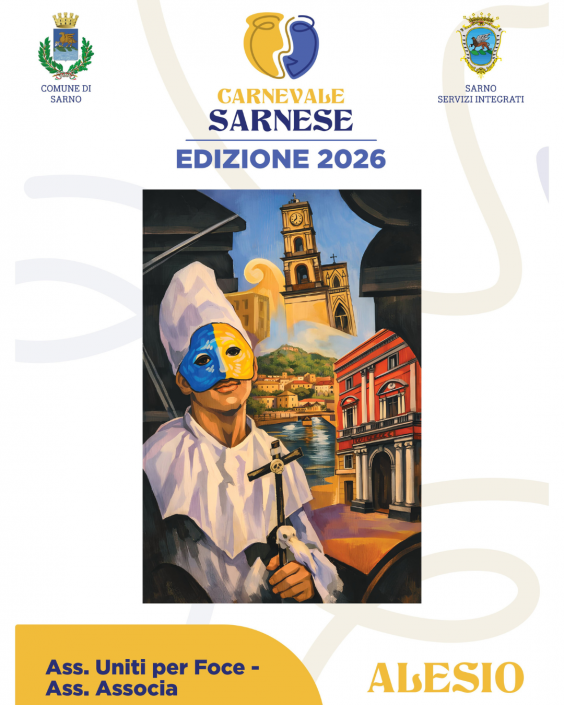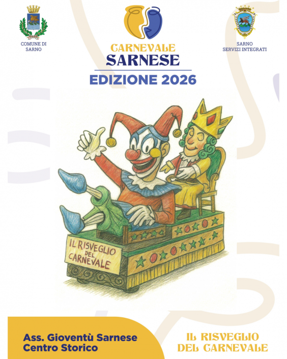 Alle ore 17.30 conferenza stampa di presentazione del “Carnevale Sarnese 2026” presso l’Aula Consiliare del Comune di Sarno